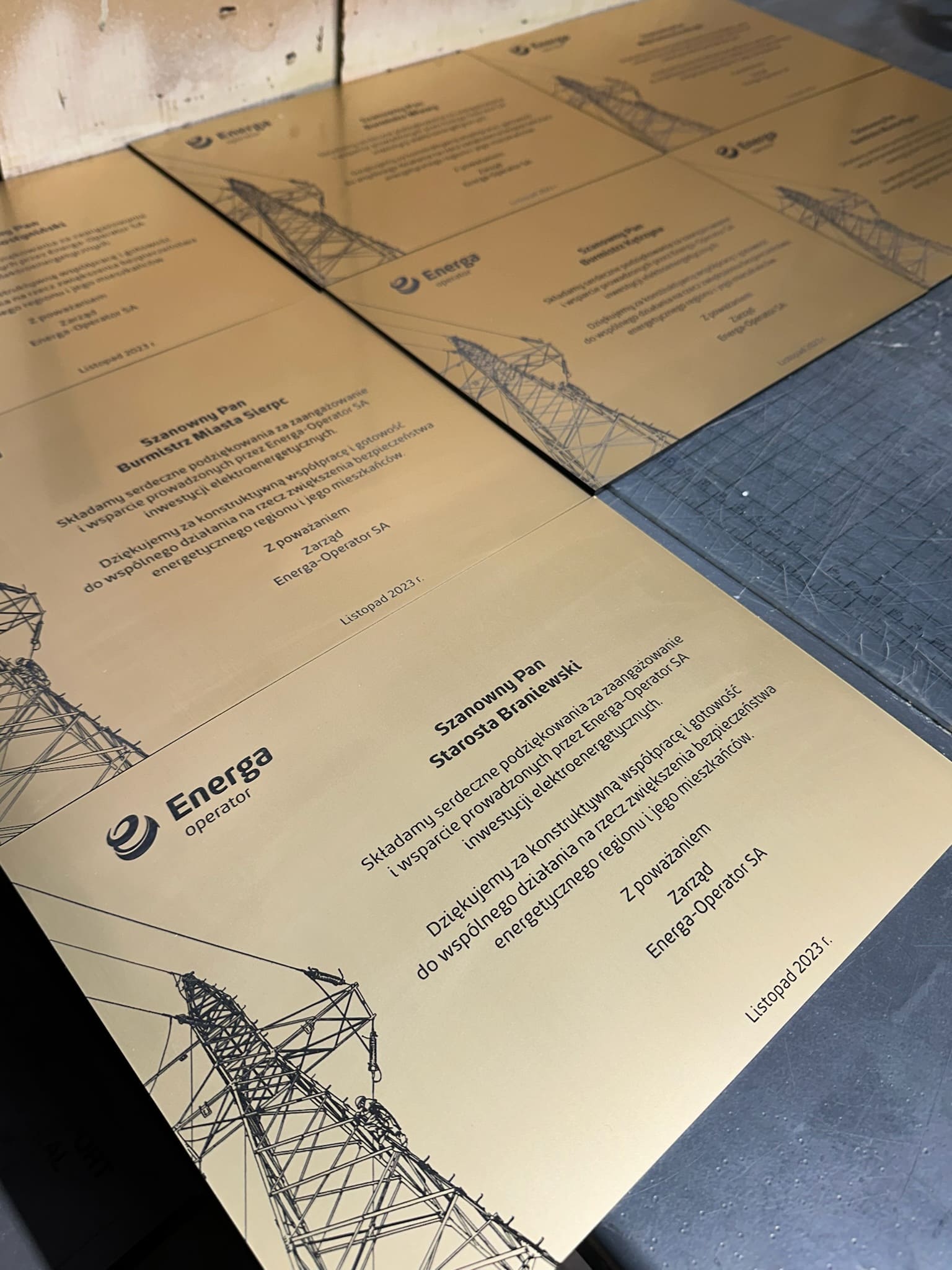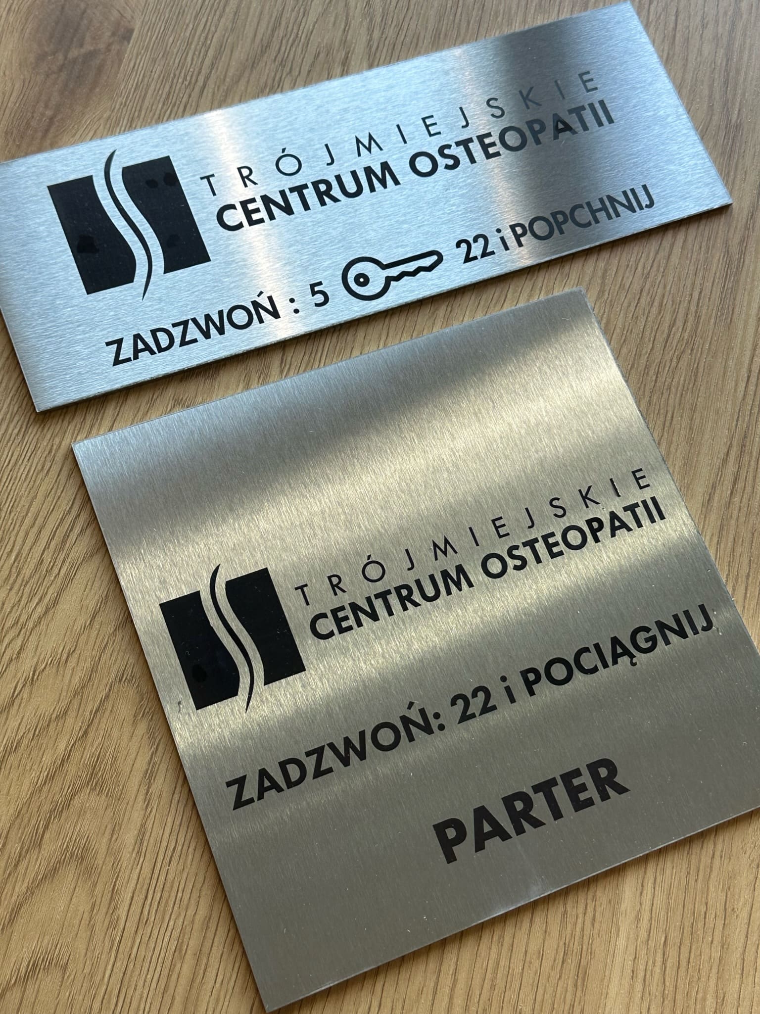 - Grawer na metalu — trwałe i wyraźne zdobienia oraz oznaczenia, jak np. tabliczki znamionowe i logotypy.