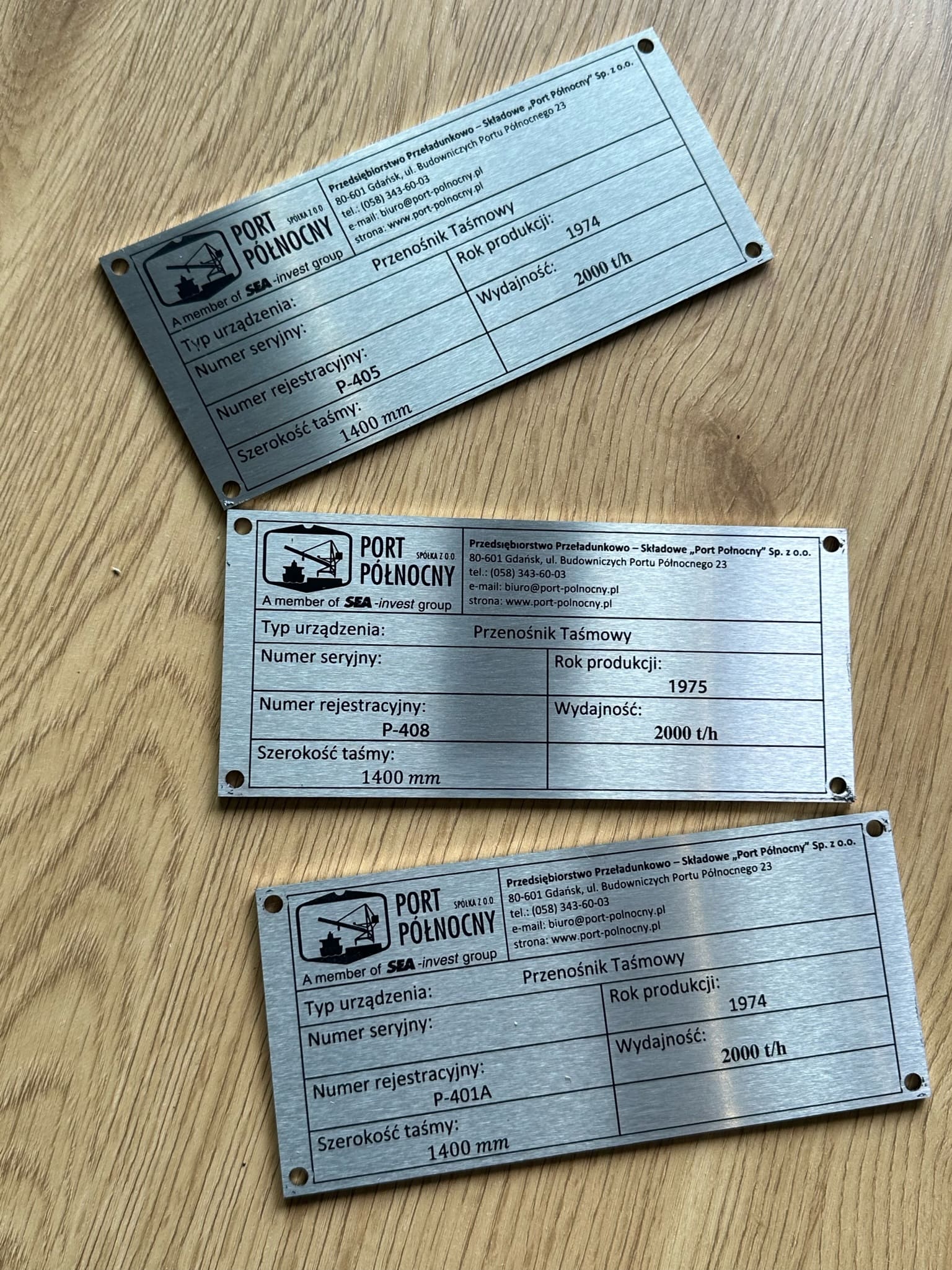 - Port Gdańsk i terminale kontenerowe wymagają specjalistycznego oznakowania kontenerów kodami identyfikacyjnymi oraz grawerowania tablic informacyjnych odpornych na warunki atmosferyczne. Realizujemy też personalizację sprzętu portowego i dźwigów, a także systemy identyfikacji ładunków i palet.