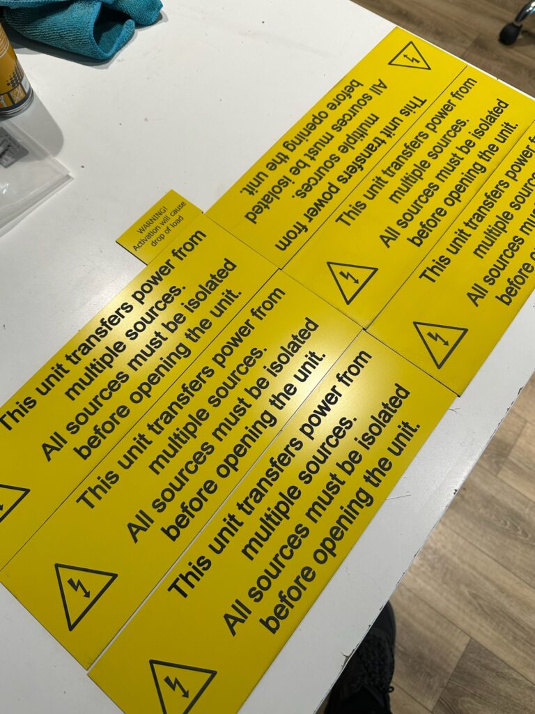 - tabliczki znamionowe dla maszyn, urządzeń i wind,