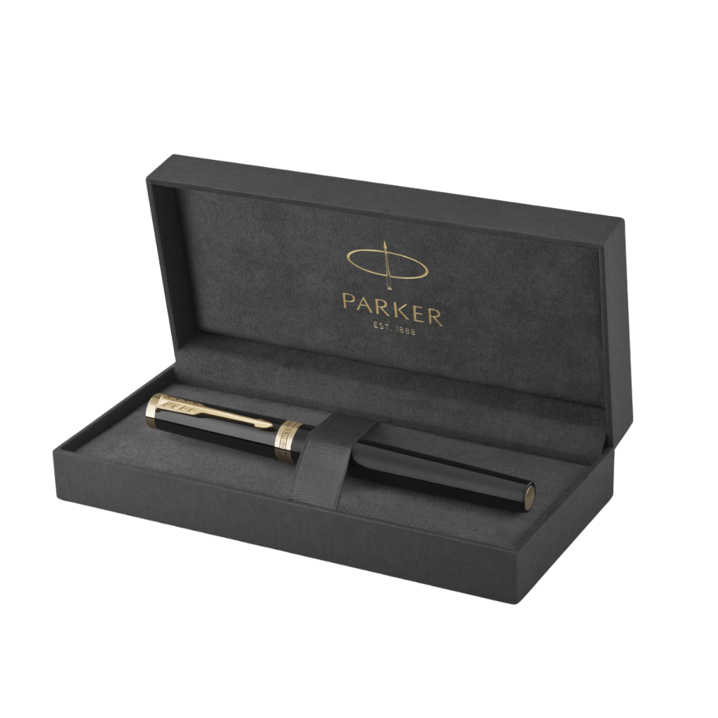 Już na pierwszy rzut oka Parker Ingenuity Czarne GT przyciąga wzrok swoim głębokim, czarnym lakierem, który pokrywa korpus i nasadkę pióra. To nie jest tylko kolor – to elegancja, która promieniuje pewnością siebie. Wykonane z mosiądzu, pióro pokryte jest wieloma warstwami lakieru, co nadaje mu wyjątkową głębię i połysk. Pozłacane wykończenia oraz precyzyjnie grawerowana sekcja są jak biżuteria – dodają szyku i podkreślają luksusowy charakter tego modelu.