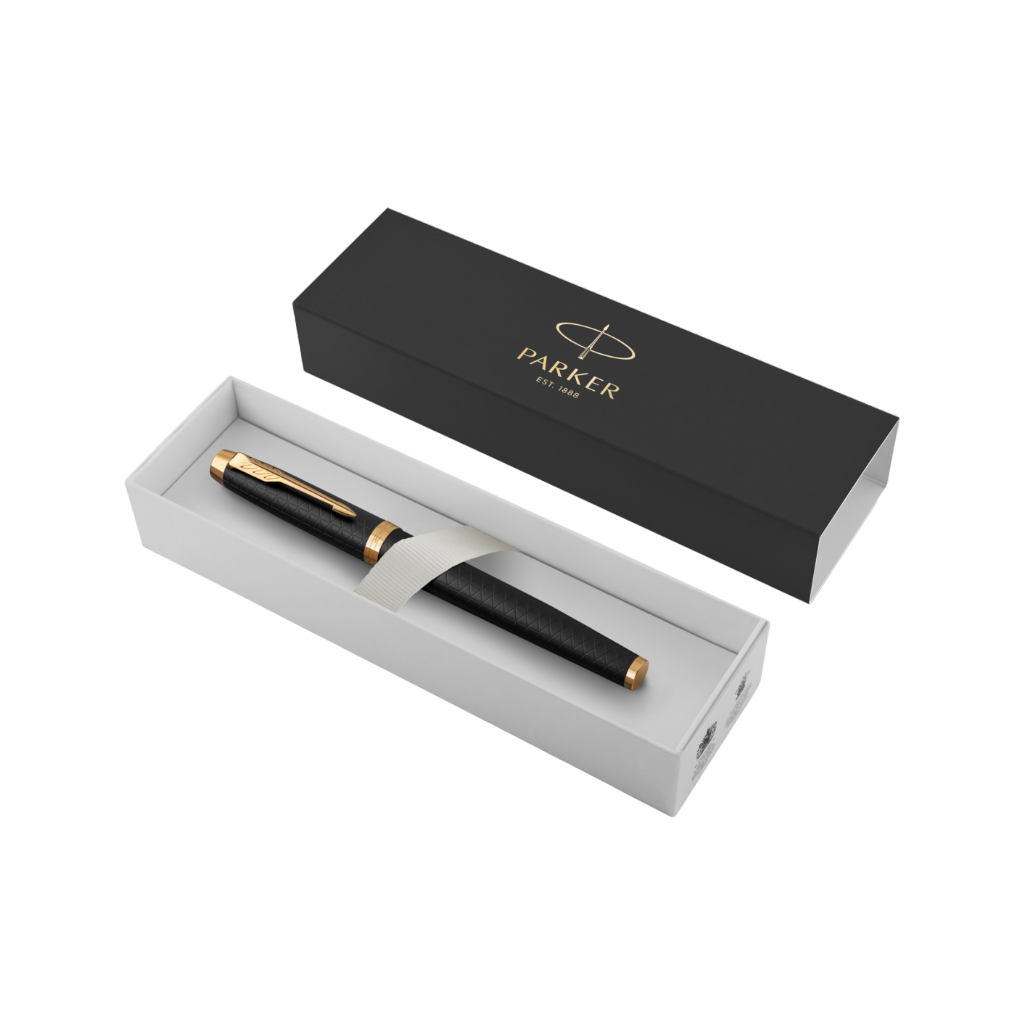 Nie chodzi tylko o wygląd – Pióro Wieczne Parker IM Premium Black Gold to także mistrzostwo w kwestii komfortu pisania. Ergonomiczny kształt i idealnie wyważona konstrukcja sprawiają, że każde pociągnięcie pióra po papierze jest płynne i przyjemne. Czasami najlepsze pomysły pojawiają się w chwilach, gdy ręka pisze niemal automatycznie. Z tym piórem każda myśl zamienia się w tekst z taką gracją, jakby sama pisała się w złotej kaligrafii.