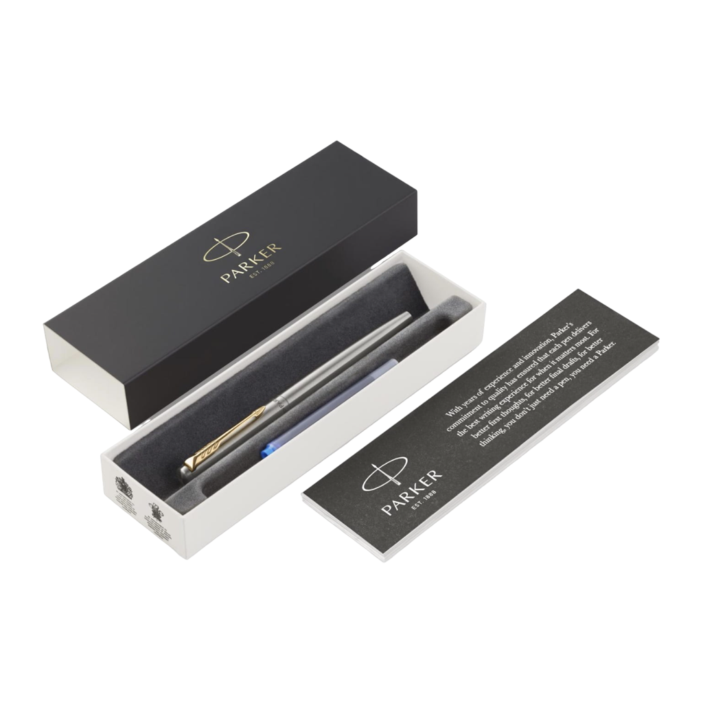 Pióro wieczne Parker Jotter Stalowe GT to idealny wybór dla osób, które pragną połączyć elegancję z funkcjonalnością. Wysokiej jakości wykonanie, klasyczny design oraz możliwość personalizacji sprawiają, że jest to inwestycja, która przetrwa próbę czasu. Zainwestuj w pióro Parker Jotter i pozwól, by Twoje słowa zyskały na wartości. Dzięki niemu każdy dzień stanie się okazją do twórczości, wyrażania siebie i cieszenia się pięknem pisania.